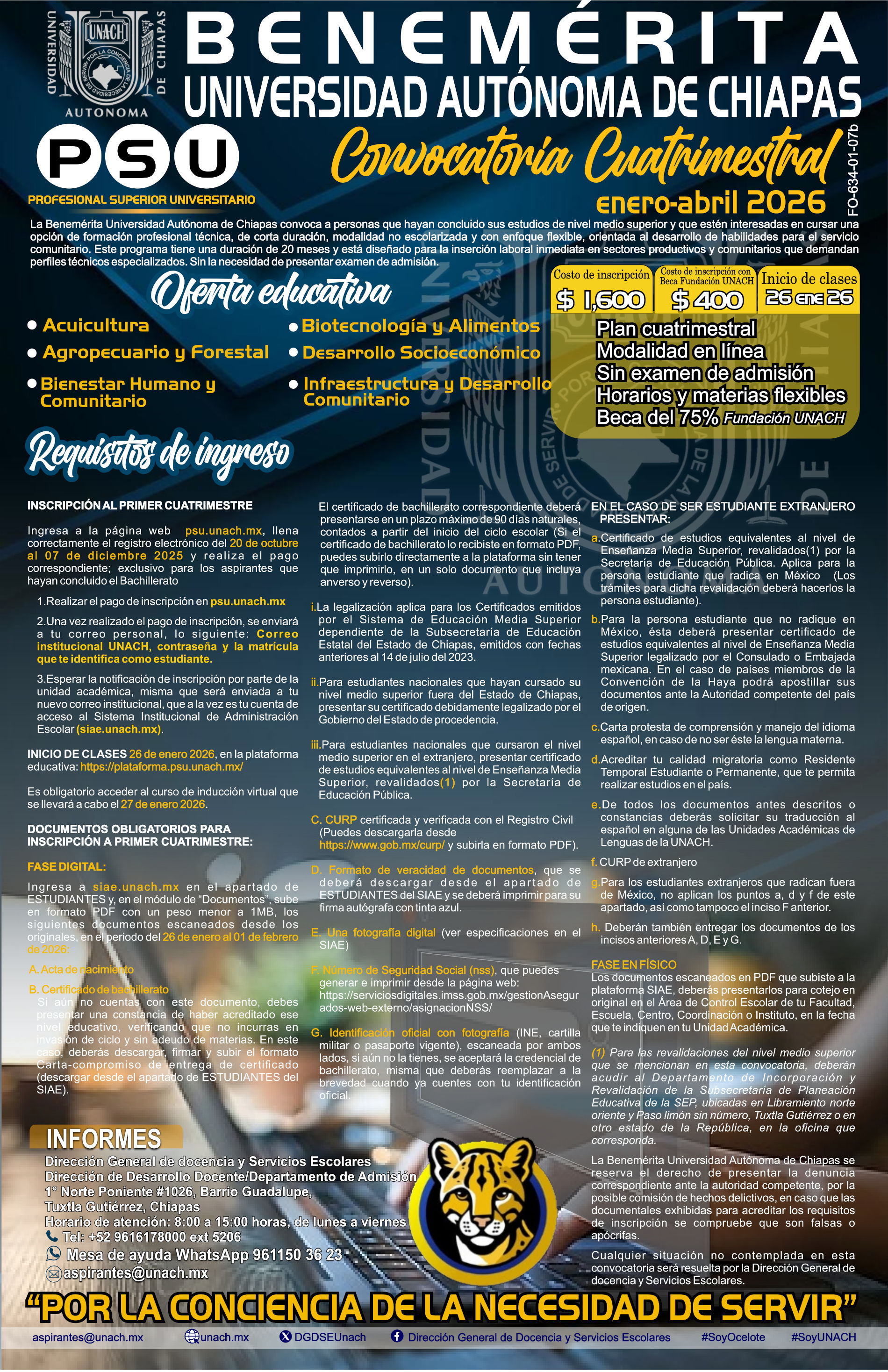 Convocatoria Profesional Superior Universitaria (PSU), Enero-Abril 2026